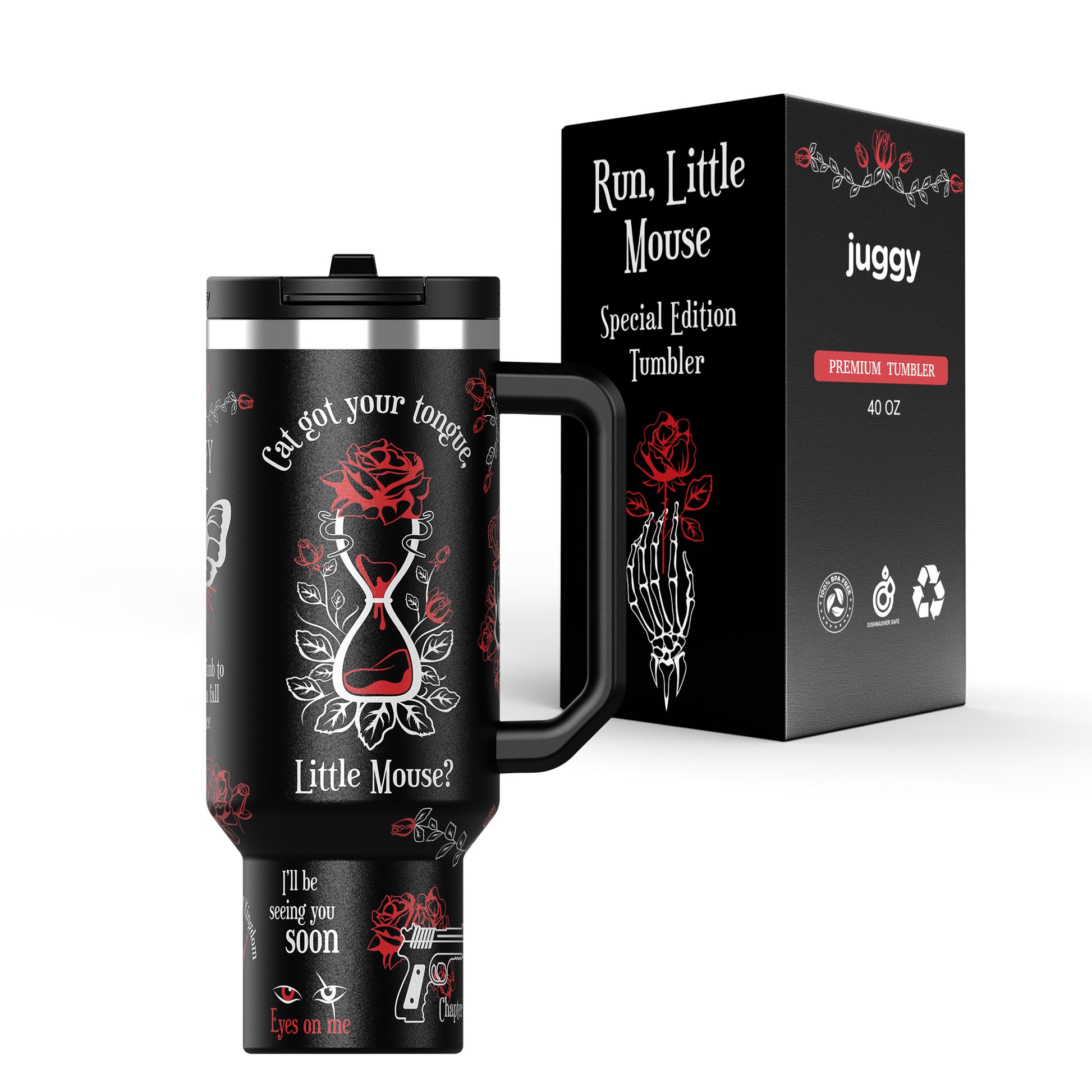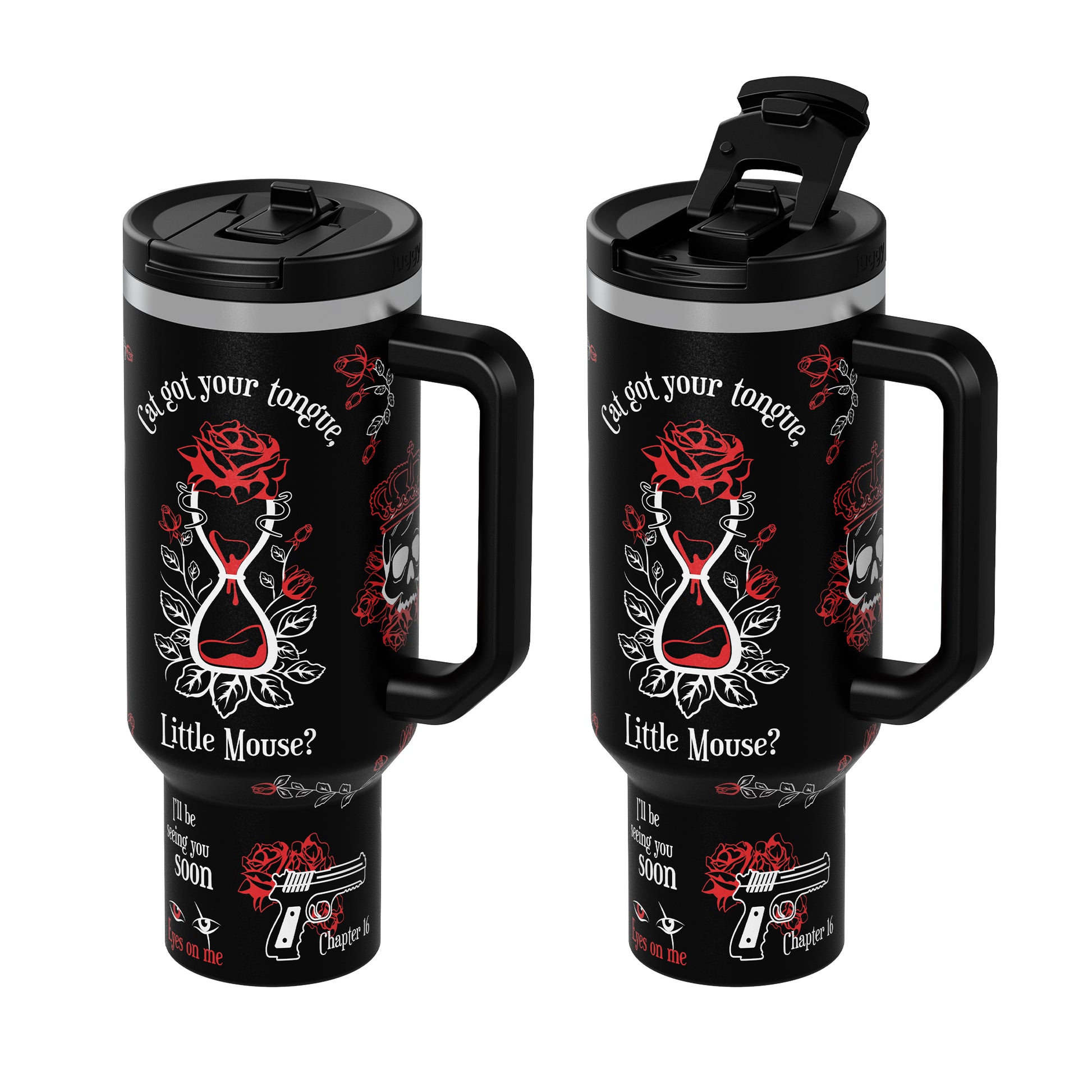 First time buyer of Juggy....and I'm so in love with my Haunting Adeline tumbler. Love how well made it is and that waterstayed cold all day! Definitely would recommend your company!!! Also just brought 2 more of you book themed tumblers that's how amazed with how all they are made...in my opinion I love it better then Stanley