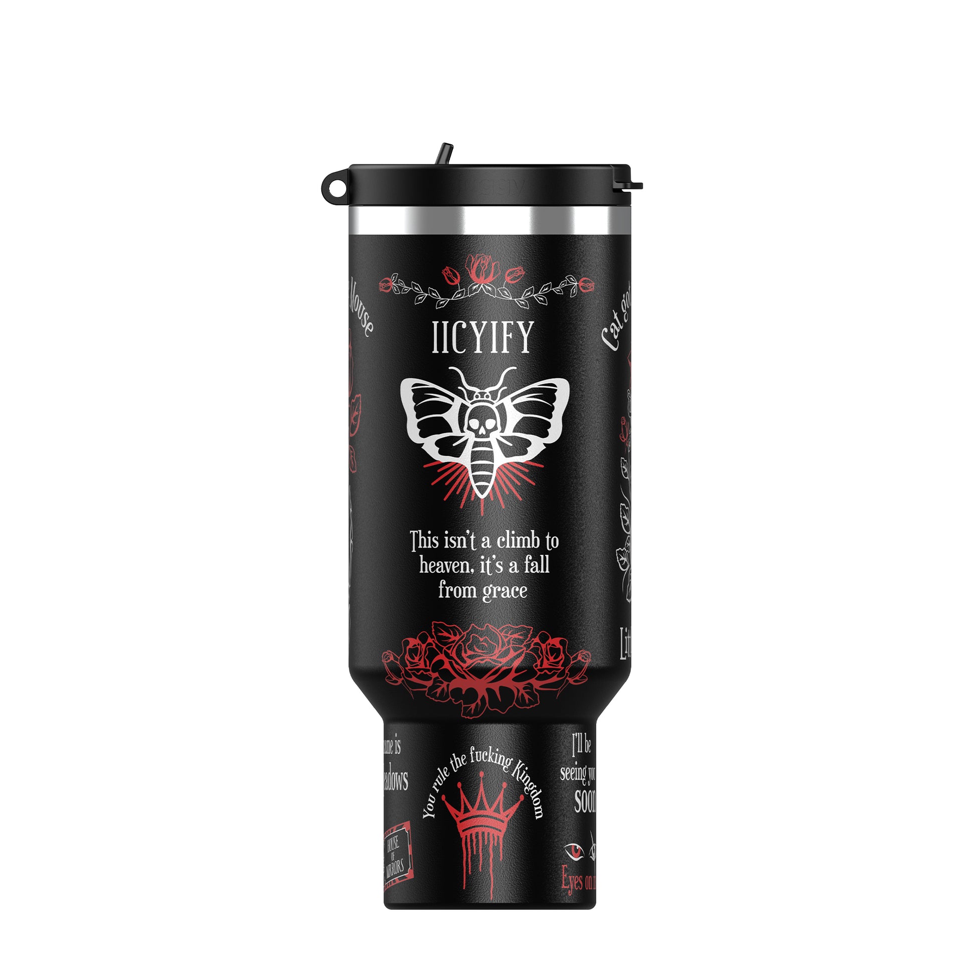 Dripping in dark elegance and danger, this stainless steel beast holds enough caffeine (or something stronger 👀) to fuel your next Zade binge.