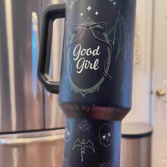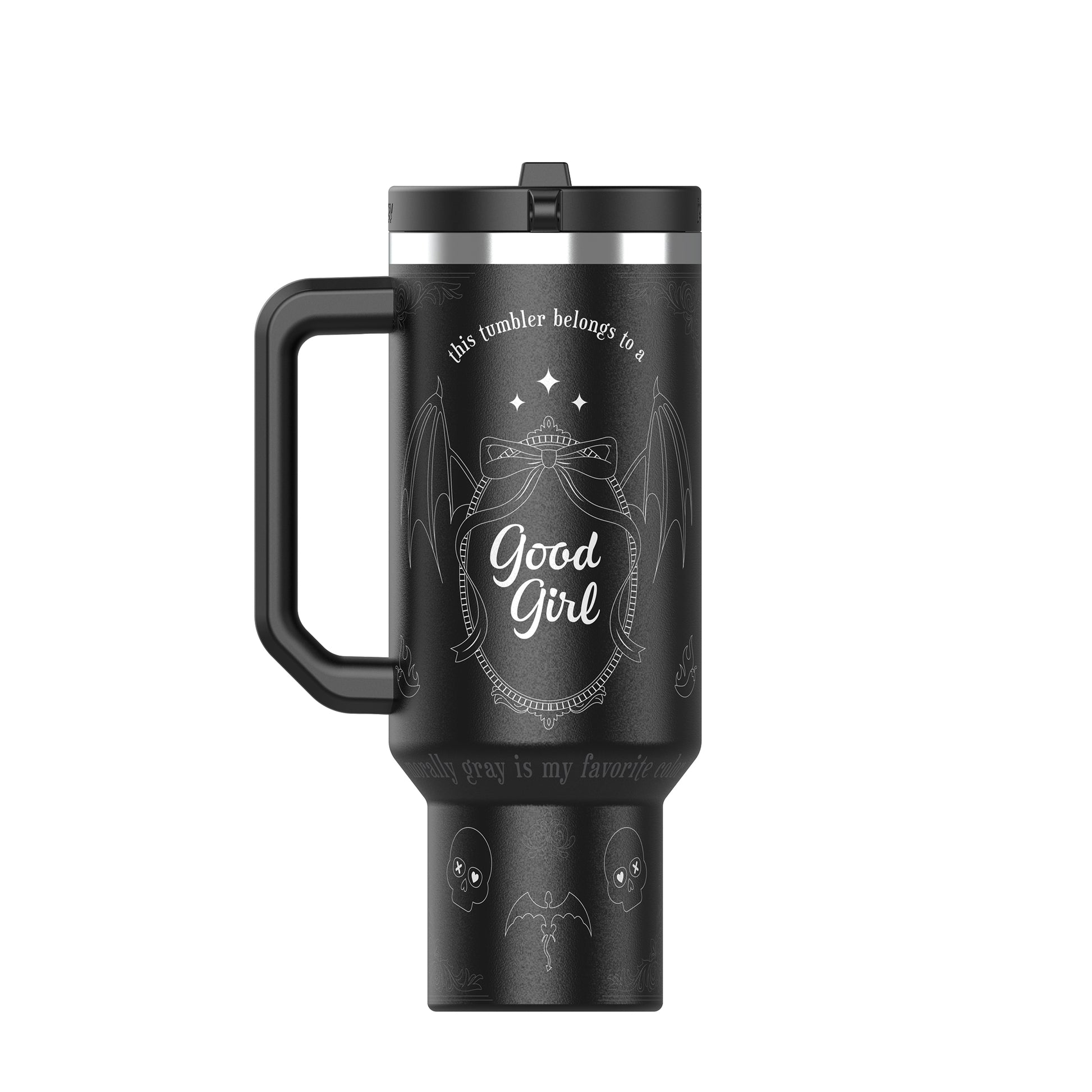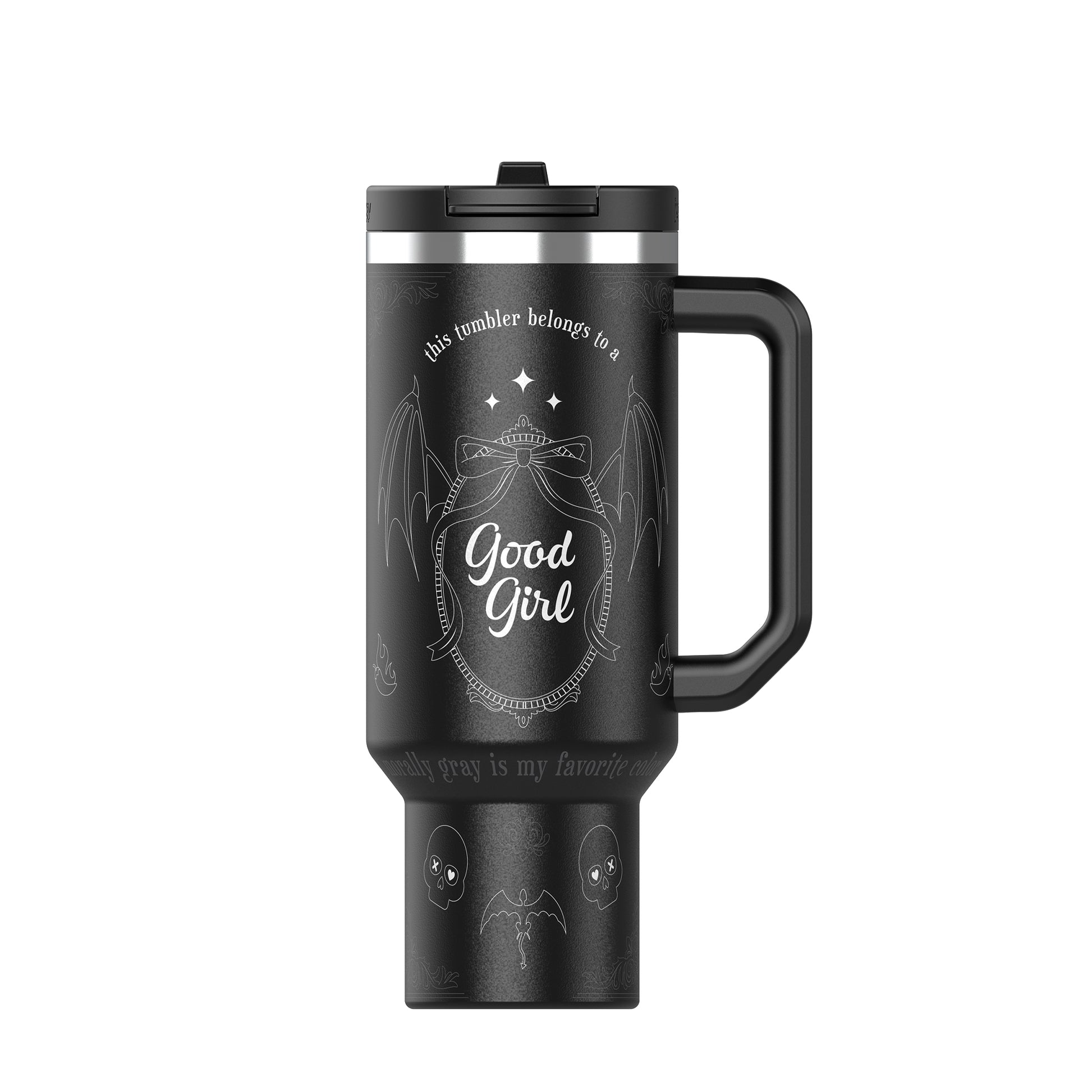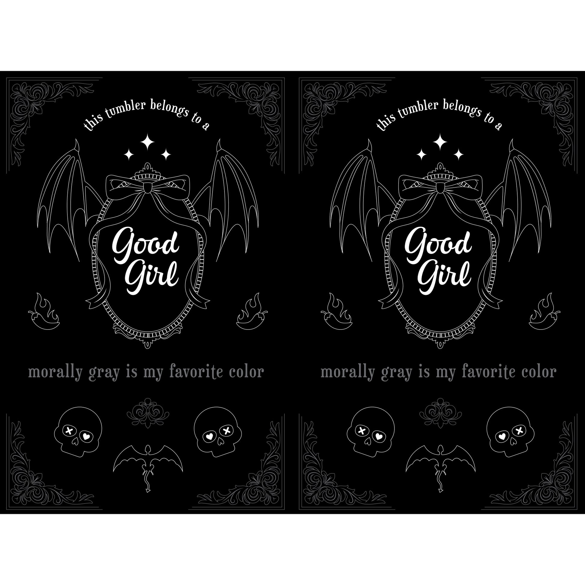 Featuring bold text that declares “This tumbler belongs to a good girl” and the unapologetic truth “Morally gray is my favorite color” underneath, this cup is the perfect nod to your favorite book boyfriends—the ones who blur the lines between right and wrong.