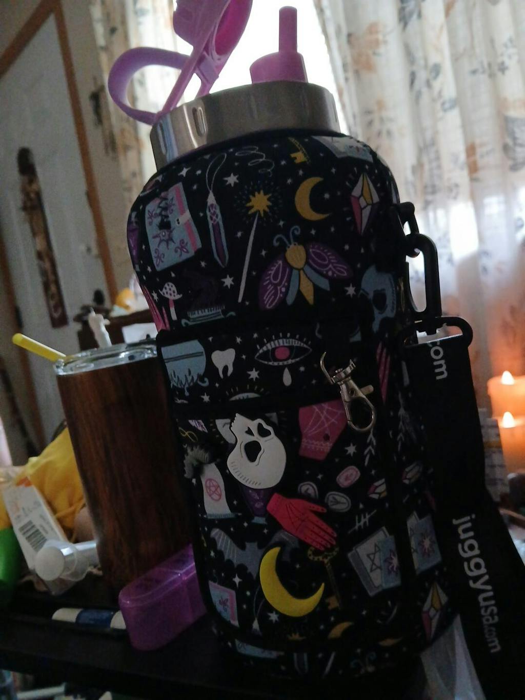 Love the bright vivid colors, easy to hold handle, strap and pockets! The charms are really cool too!! My only wish is that it kept liquids cooler longer, but it helps me get my water in every day, so it is still a win! Love it