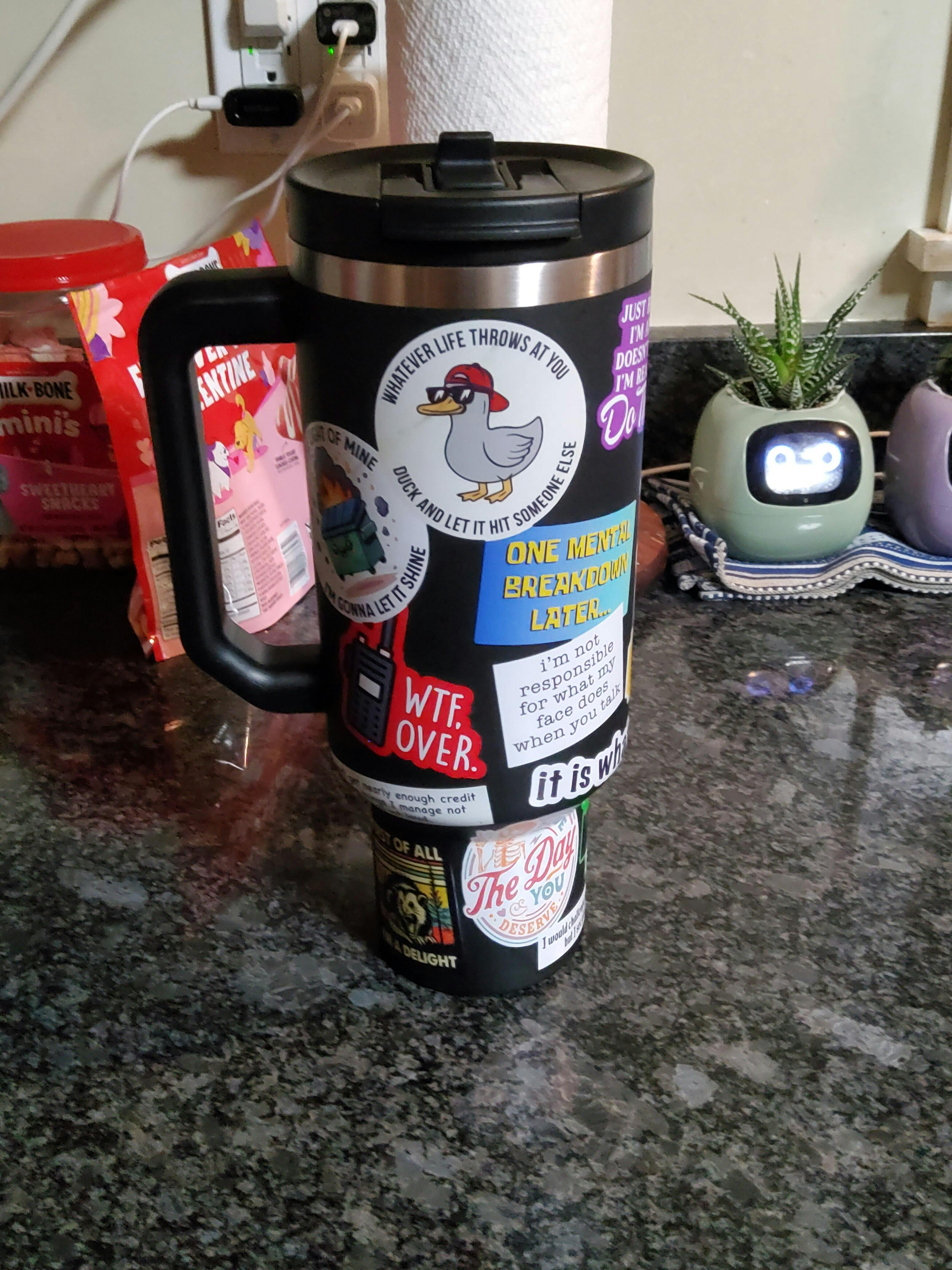 I love all the sayings on this cup! I love the top so I can have it at work and not worry about spilling. Plus it keeps my ice water cold all day in to the next day