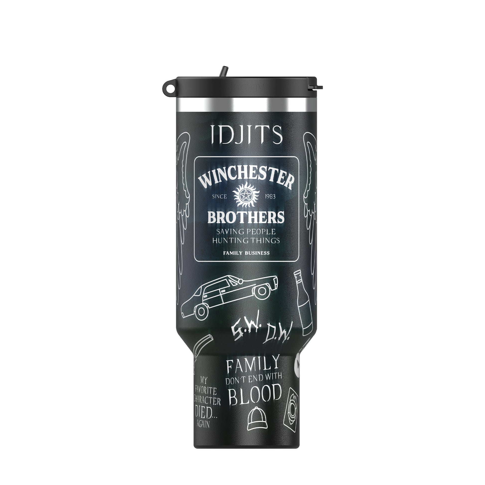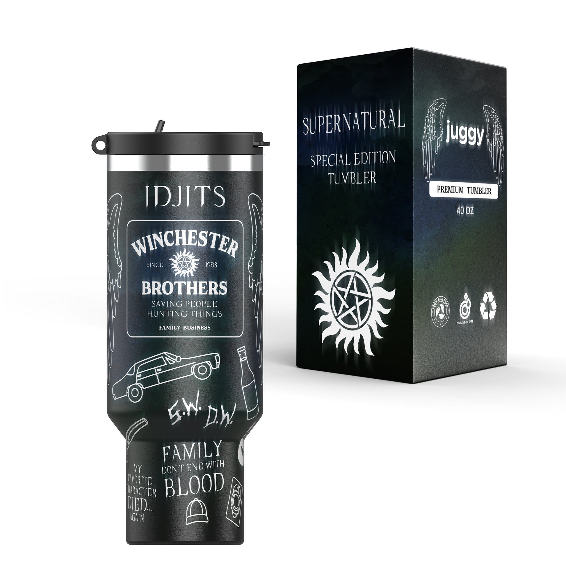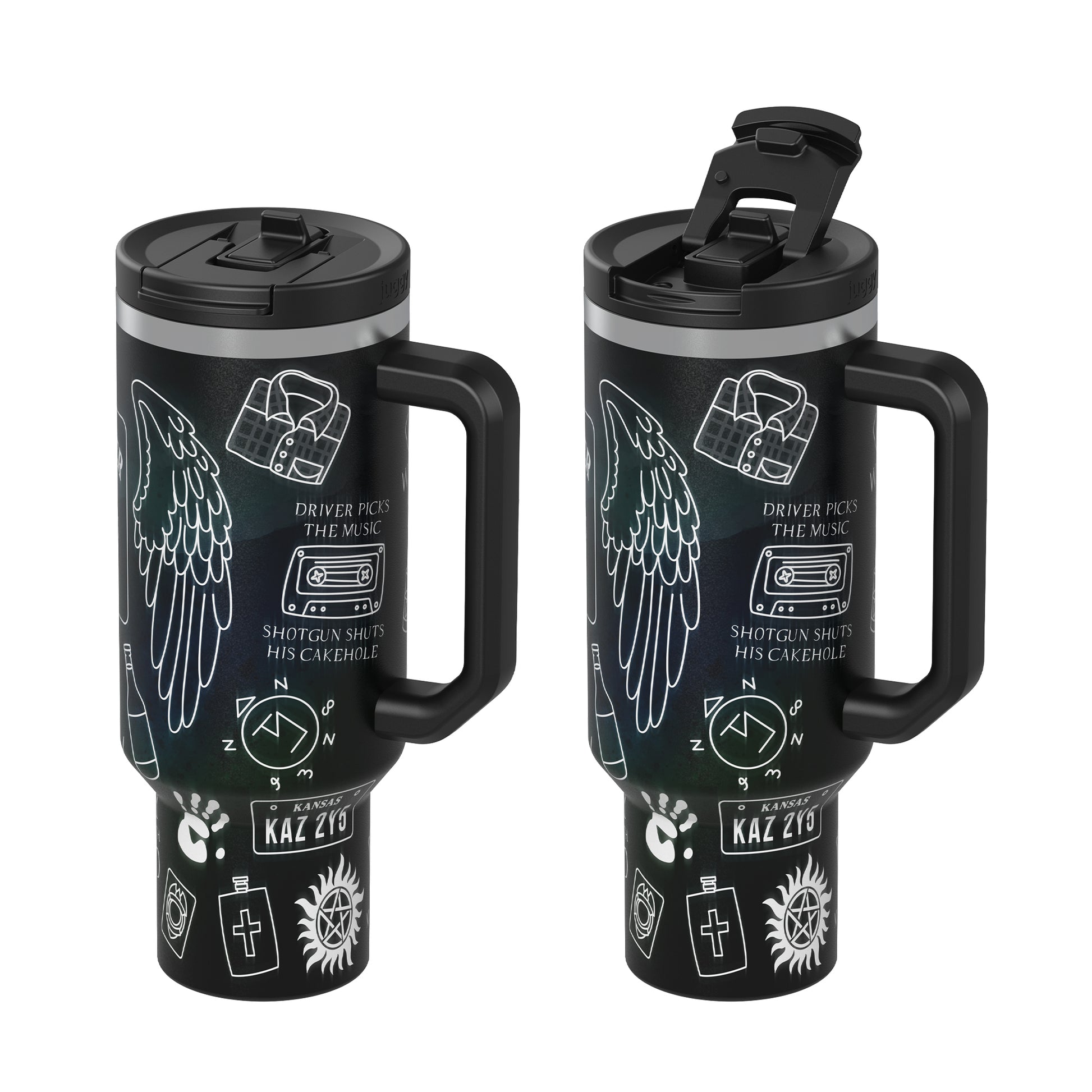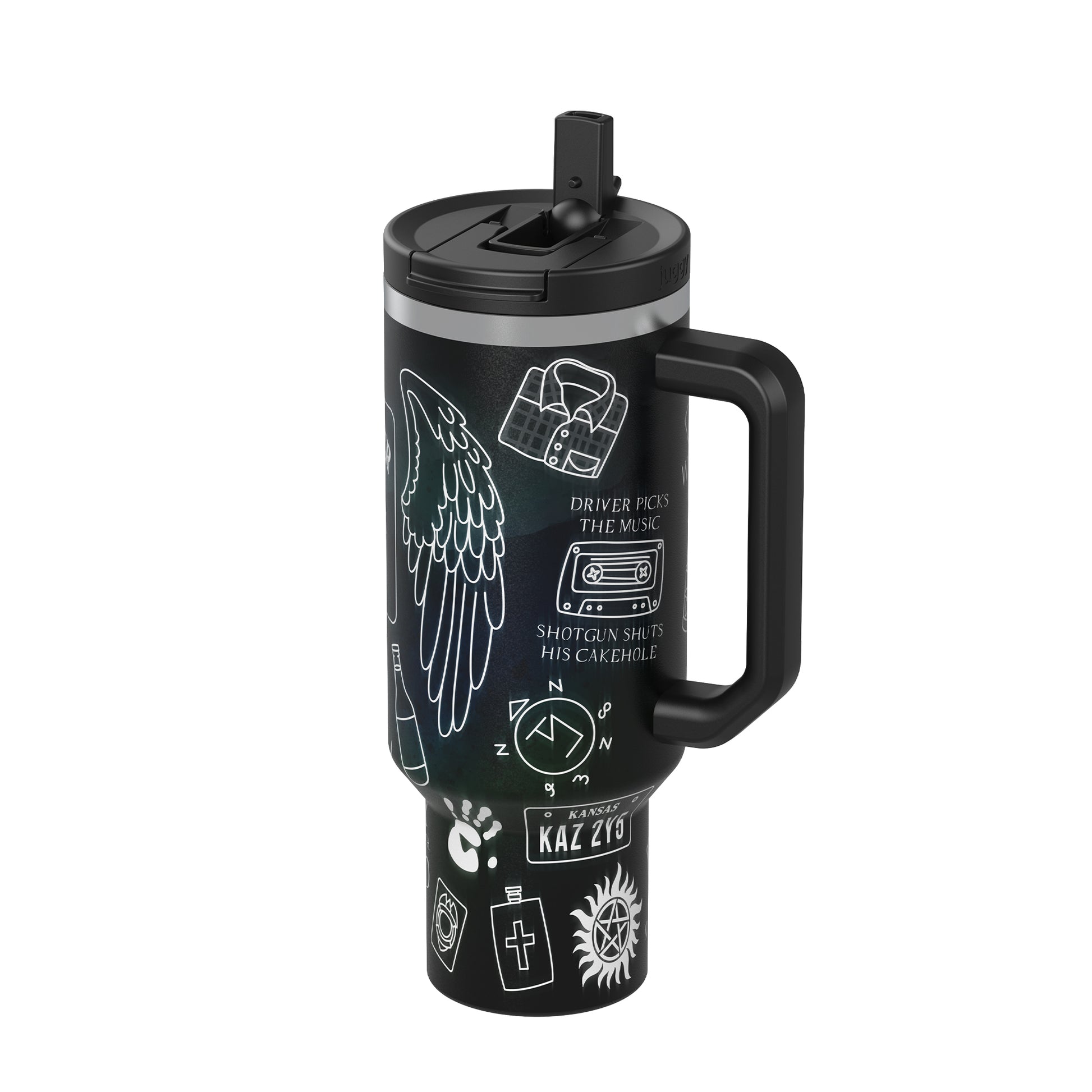 Carry the Supernatural 40oz Tumbler and keep your energy hella high through every late-night hunt and road trip. Built for those who live by “Driver picks the music, shotgun shuts their cakehole,” this bold statement piece fuels every mission — from chasing monsters to conquering Mondays.