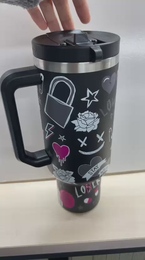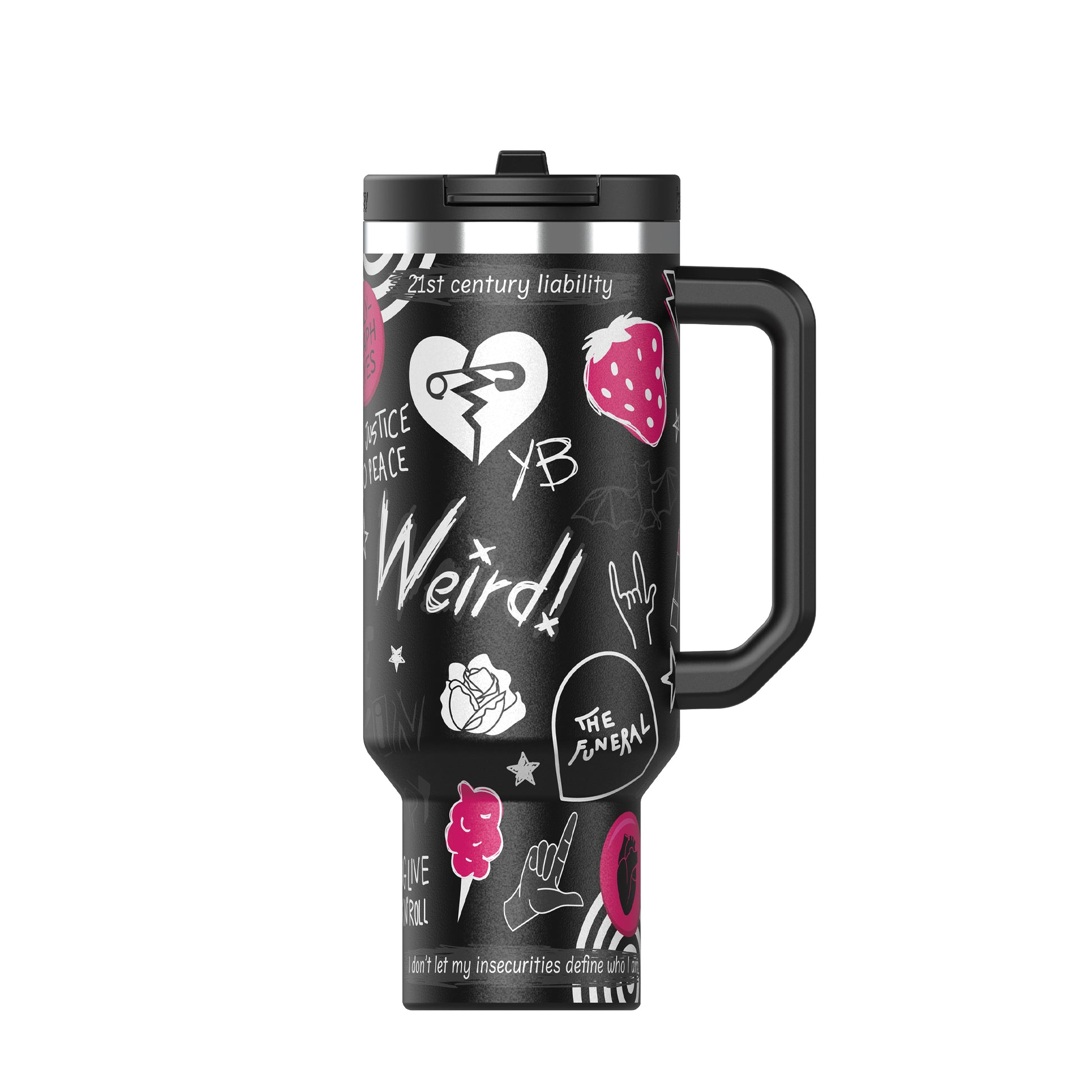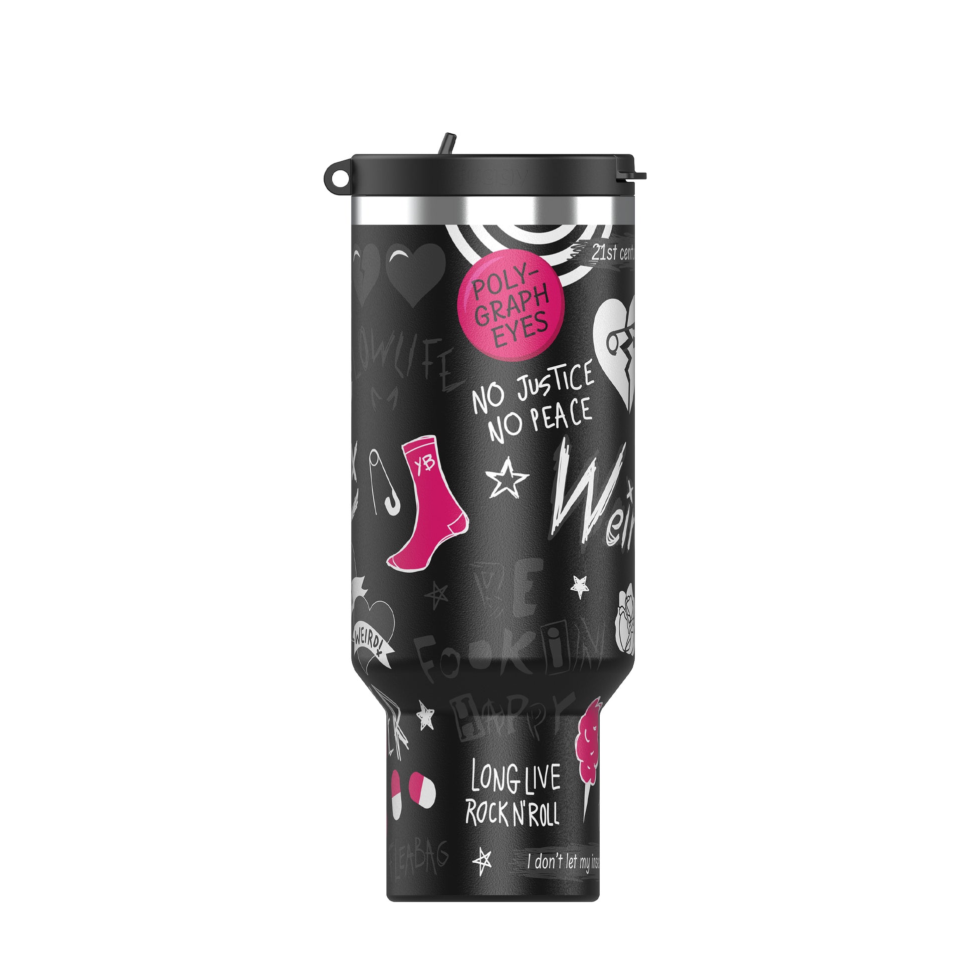 Fuel your wild and Thirst for Chaos, a limited-edition 40oz tumbler inspired by the electric, genre-bending style of today’s modern alt-rock scene. Designed for fans who live loud, love bold, and aren’t afraid to stand out, this tumbler brings concert-night energy straight to your everyday routine.